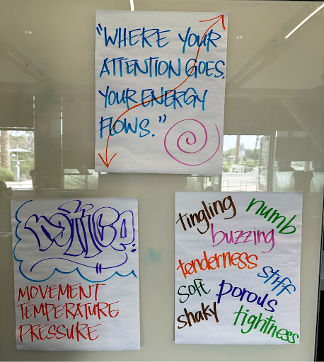 A few anchor posters made by Tanya Suzuki for the in-person cohort of CrEW to practice feeling through the body.